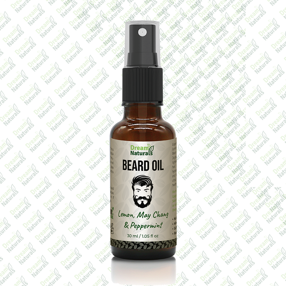 Enjoy the refreshing scent and benefits of Dream Naturals Lemon, May Chang, and Peppermint Beard Oil for a perfectly groomed beard!